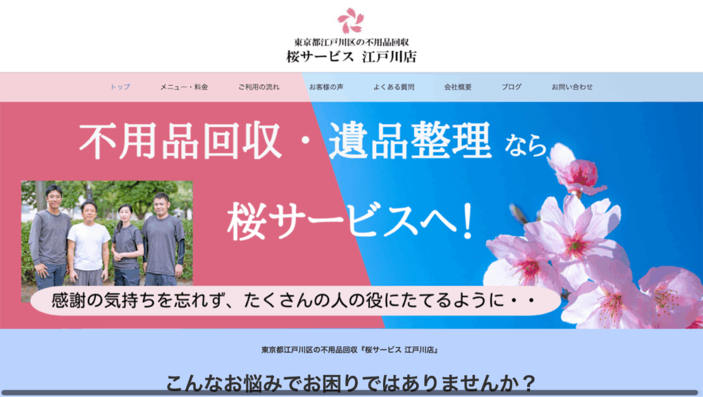 「桜サービス 江戸川店」は、江戸川区を中心に不用品回収から遺品整理まで幅広く対応している地域密着型の業者です。