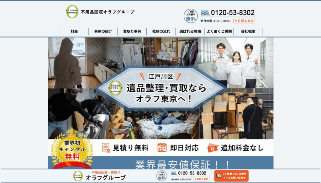 「不用品回収オラフグループ」は、江戸川区を含む23区全域で幅広く対応している業者です。