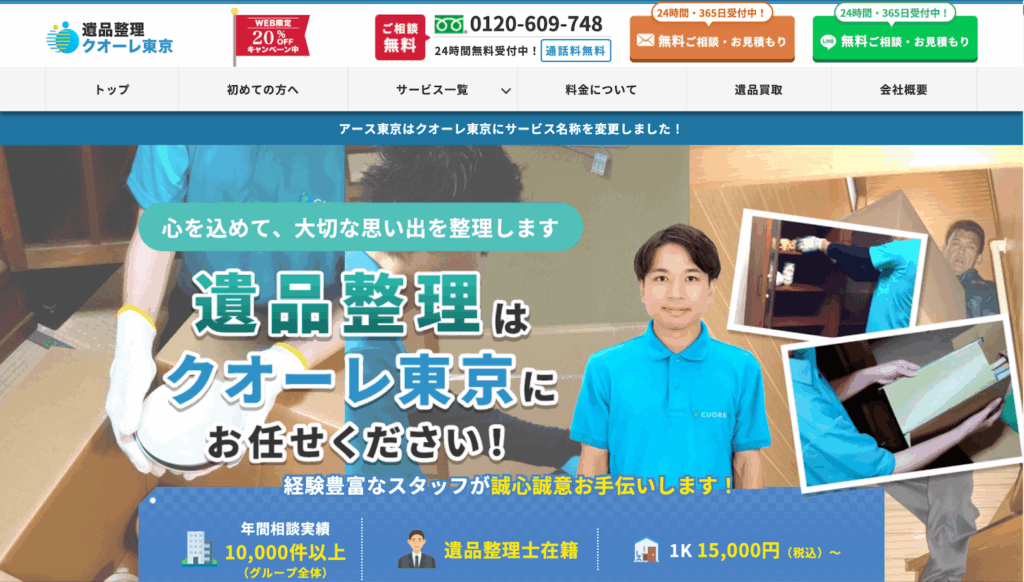 「遺品整理 クオーレ東京」は24時間365日いつでも相談でき、江戸川区にも迅速に対応してくれる体制が整った専門業者です。
