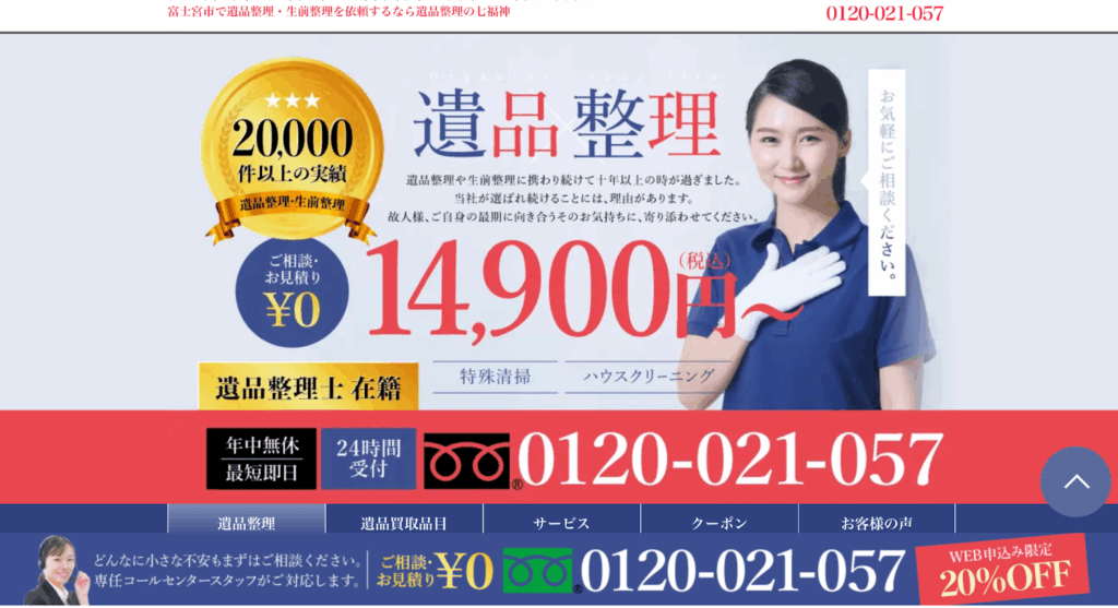 遺品整理の七福神は、富士宮市内を広範囲に細かくカバーしている地域密着型の業者です。