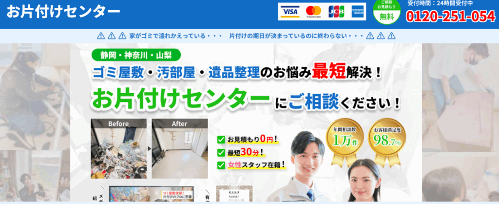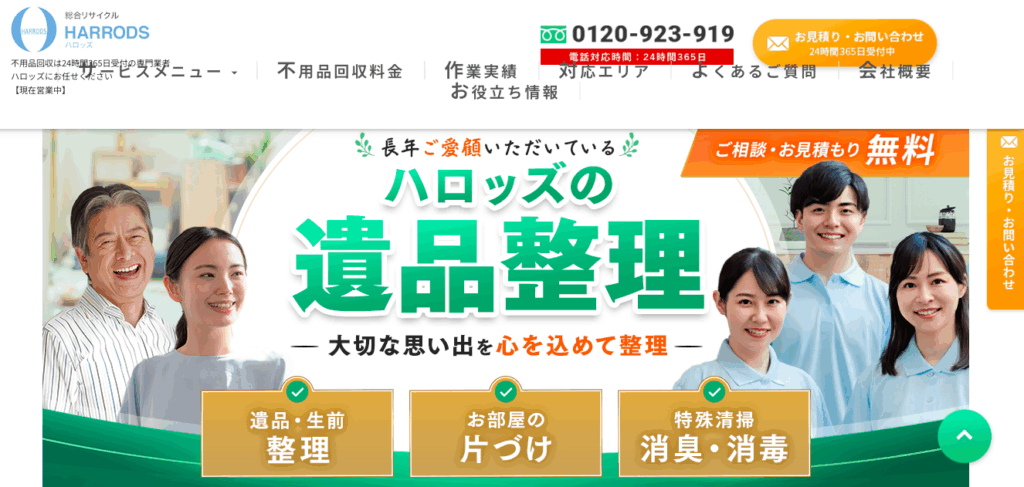 優良事業所認定を7年連続で取得している、信頼度が高い遺品整理業者です。メディアにも多数出演しており、知名度もあります。