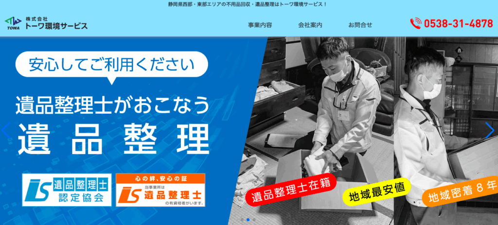 遺品整理士が在籍しているため、初めての人でも安心して依頼できます。地域密着型の業者で、静岡県の情報にも精通しているので、地元の業者に依頼したい人におすすめです。