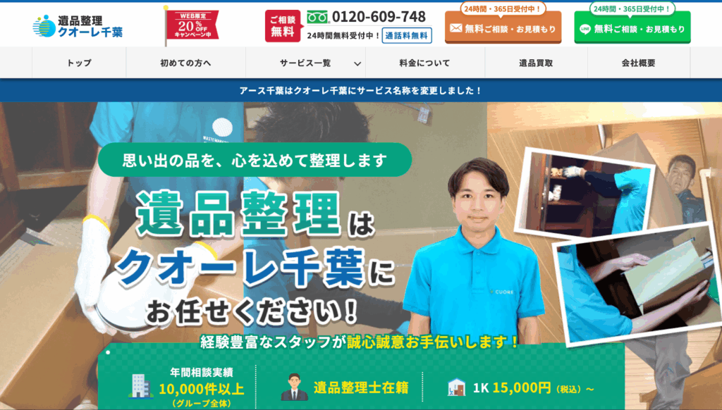 「遺品整理クオーレ千葉」は、24時間365日の受付体制で急な依頼にも対応できる安心感が強みです。