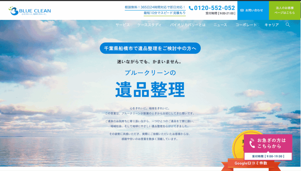 「ブルークリーン」は、船橋市を含む千葉県全域に広く対応しており、状況に合わせた柔軟な遺品整理を行う点が魅力です。