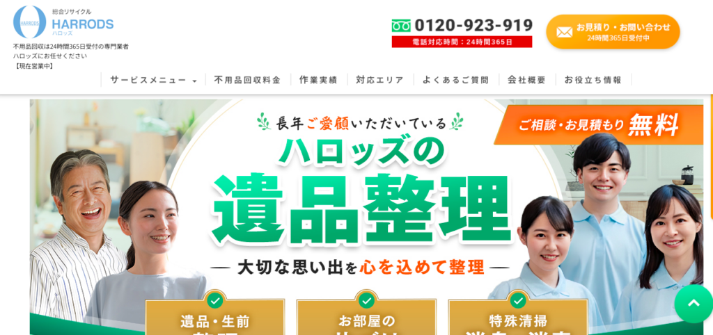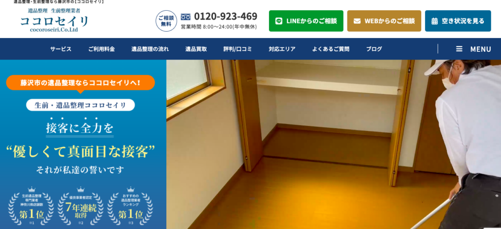 優良事業所認定を7年連続で取得している、信頼度が高い遺品整理業者です。メディアにも多数出演しており、おすすめの遺品整理業者ランキング1位を獲得しています。