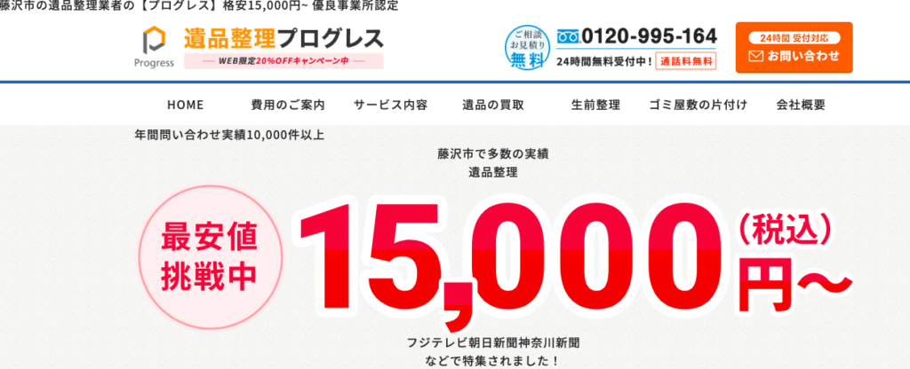 年間実績2000件以上で、メディア出演もある遺品整理業者です。急ぎで依頼人は電話で相談すると、最短即日で対応してくれます。