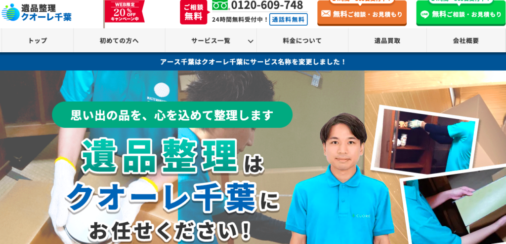 遺品整理士が在籍していて、優良事業所にも認定されています。公式サイトでは20%OFFのクーポンも配布されていますよ。ぜひアクセスしてみてくださいね。