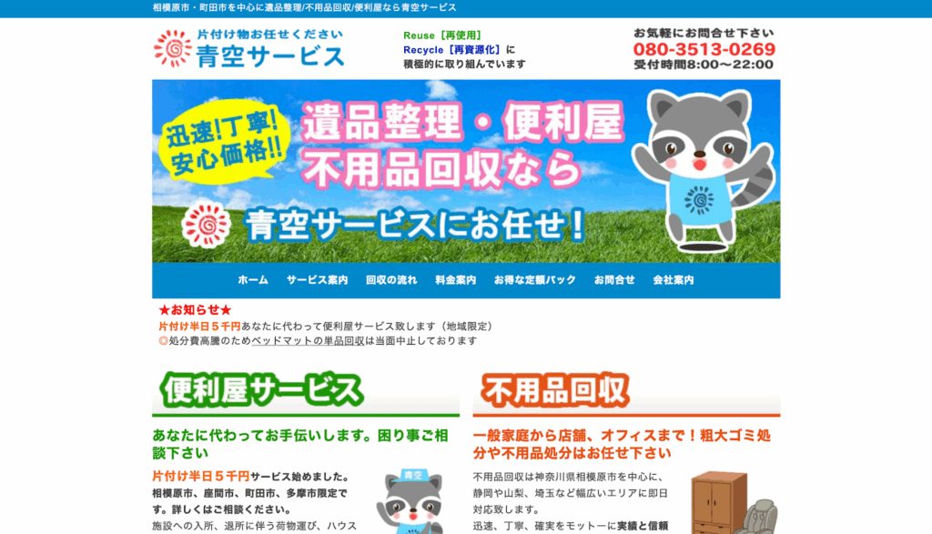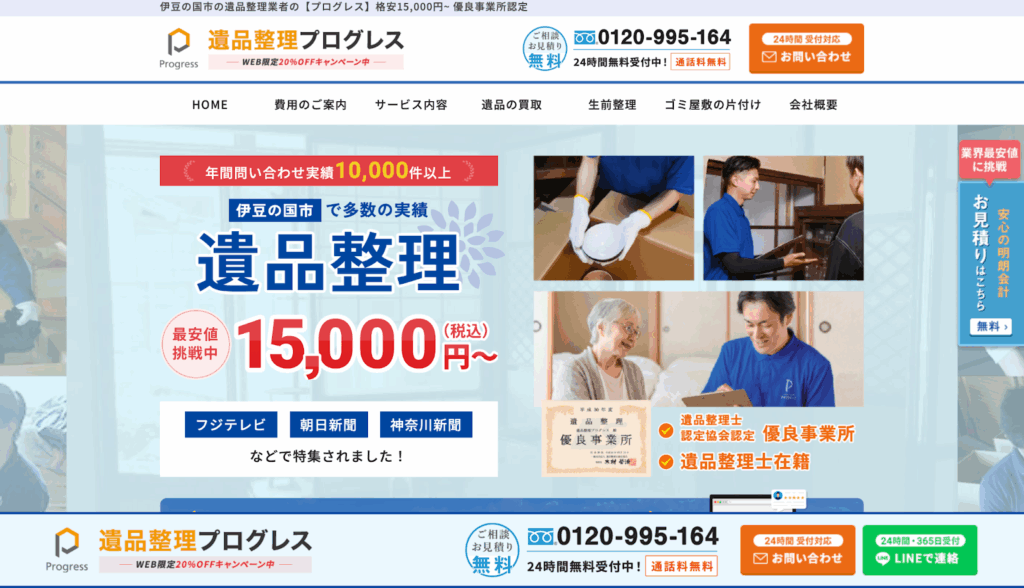 年中無休で8:30〜20:30まで受付しており、急な片付けや遺品整理にも対応しやすい点が特徴です。