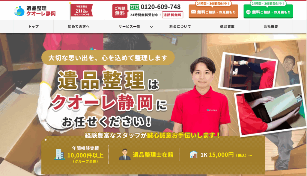 伊豆の国市にも対応している「クオーレ静岡」は、24時間・365日受付で、急な遺品整理の依頼にも柔軟に対応可能です。