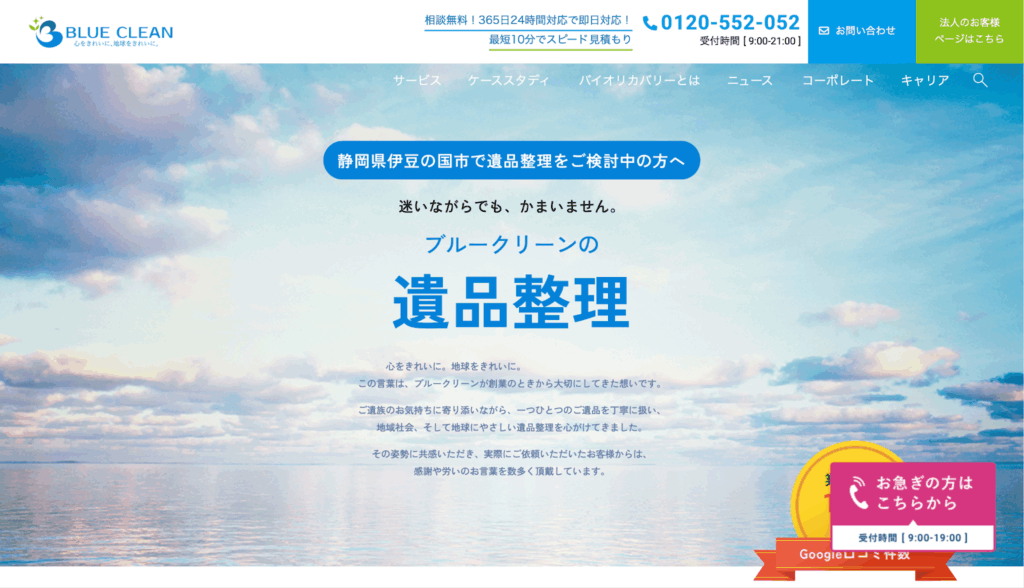 「BLUE CLEAN」は、伊豆の国市を含む広域エリアに対応する遺品整理業者です。