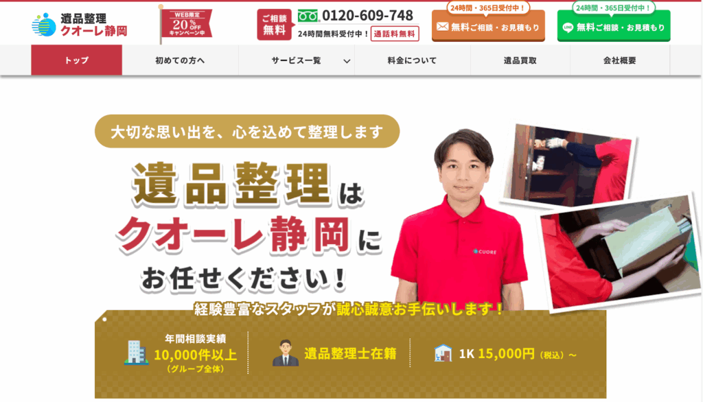 遺品整理クオーレ静岡は、掛川市を含む広範囲で24時間・365日対応可能な遺品整理業者です。