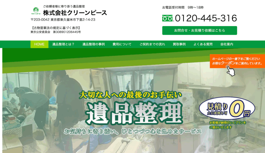株式会社クリーンピースは、掛川市を含む広範囲で対応する遺品整理・不用品回収業者です。