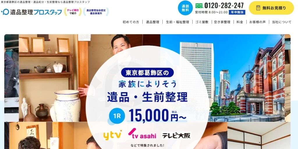 葛飾区で創業15年以上の地域密着型の遺品整理業者です。優良事業所認定も受けており、100%自社専属スタッフが対応してくれます。