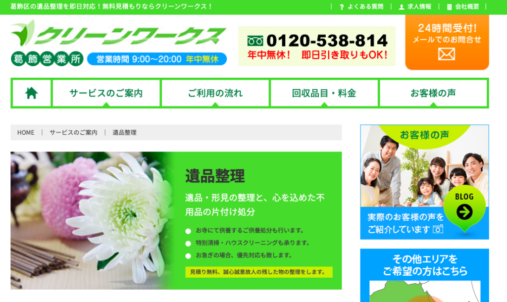 公式サイトでは、ブログや作業事例が公開されているので、依頼前の参考にしましょう。葛飾区の地域情報にも精通しているので、地域密着ならではのサービスが受けられますよ。