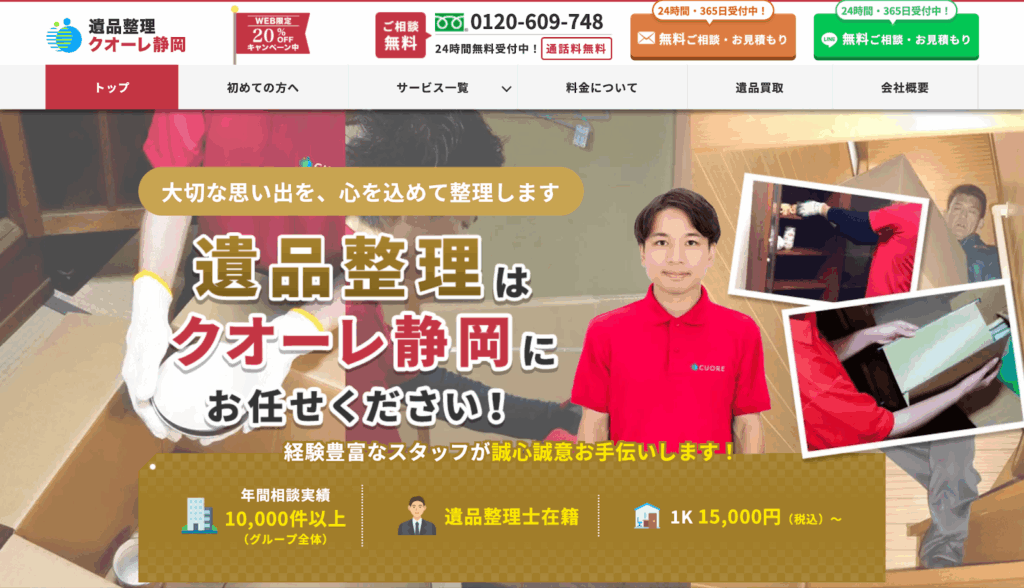 菊川市で利用可能な「遺品整理 クオーレ静岡」は、24時間・365日対応で、急ぎの整理にも柔軟に対応してくれます。