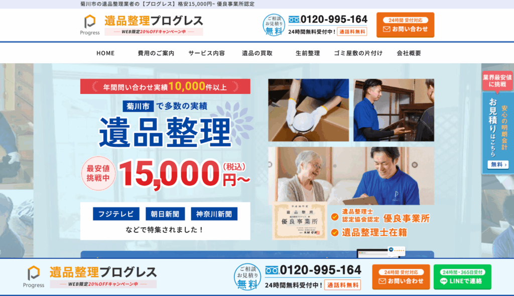 菊川市でも依頼できる「遺品整理プログレス」は、24時間・365日受付で急な整理にも対応可能です。