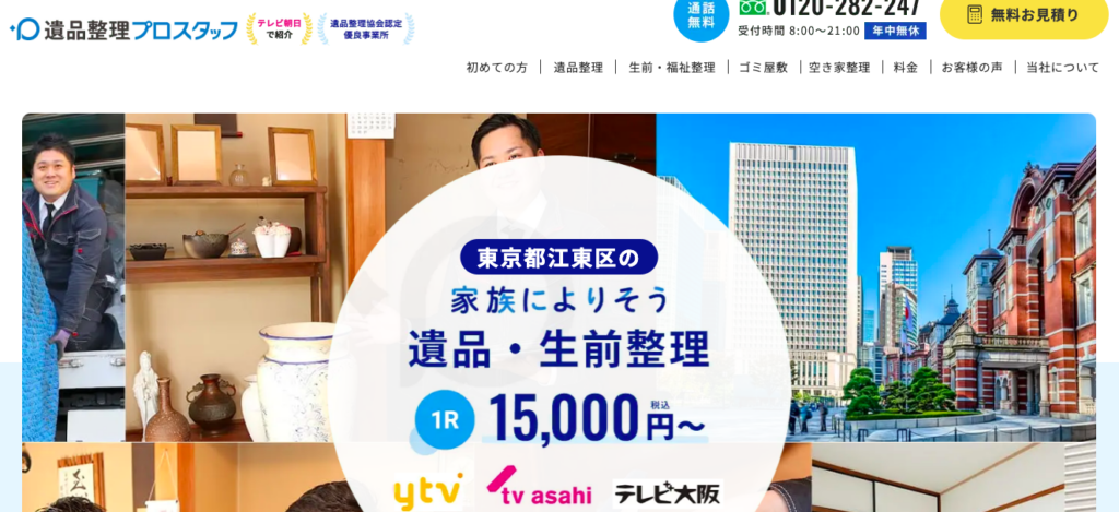 遺品整理協会で優良事業所に認定されている遺品整理業者です。テレビ朝日やテレビ大阪など、メディアにも多く出演しています。
