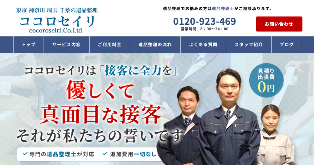 お客様満足度99%の実績があり、安心の明朗会計をしてくれる遺品整理業者です。見積り後の追加料金なし、365日対応、キャンセル料0円など安心をモットーにしており、初めてでも依頼しやすくなっています。