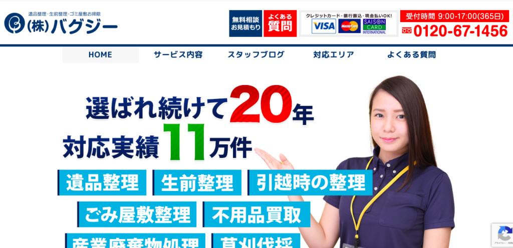 対応実績11万件以上、遺品整理歴20年以上の老舗業者です。遺品整理だけでなく、ゴミ屋敷清掃や不用品回収、草刈伐採にも対応しています。