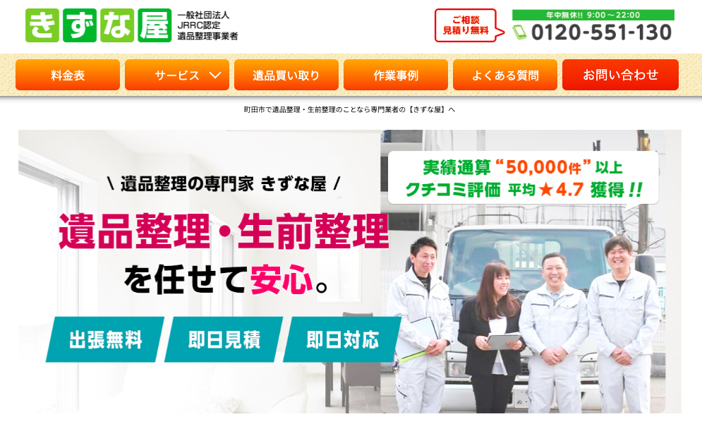 実績通算50,000件以上で、口コミ評価平均4.8の満足度が高い遺品整理業者です。遺品整理だけでなく、生前整理や特殊清掃、クリーニング、遺品の査定、不動産整理にも対応してくれます。