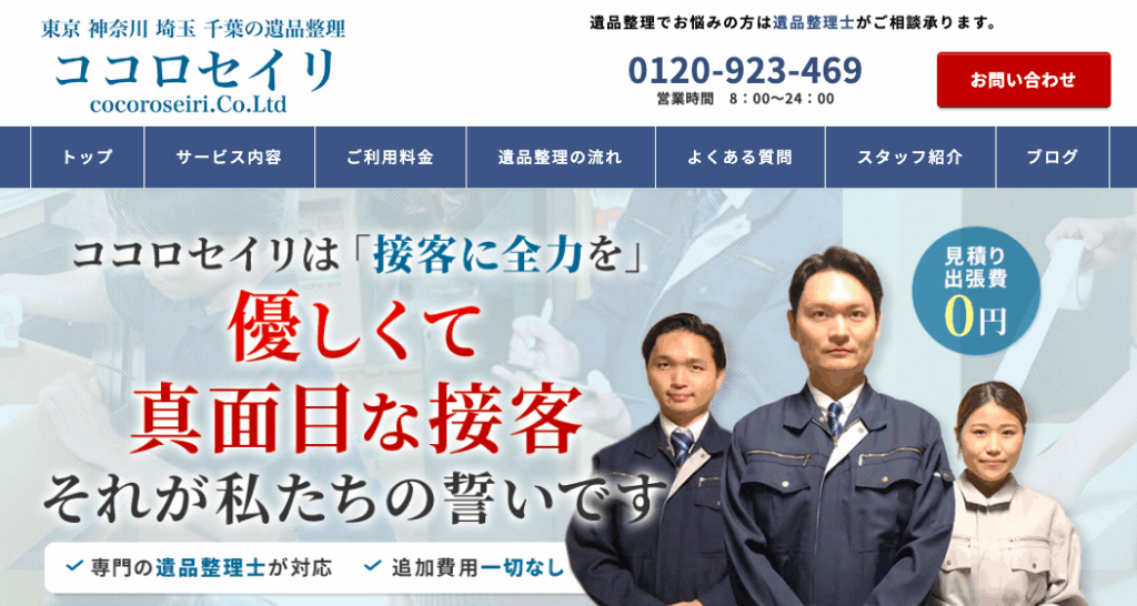 公式サイトでは、WEB限定で20%OFFのクーポンが受け取れます。遺品整理も在籍しているので、気軽に相談できますよ。