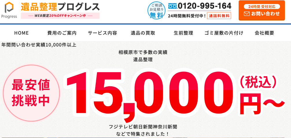 年間問い合わせ件数10,000件以上で実績が豊富な遺品整理業者です。フジテレビや朝日新聞など、数多くのメディアで特集されています。