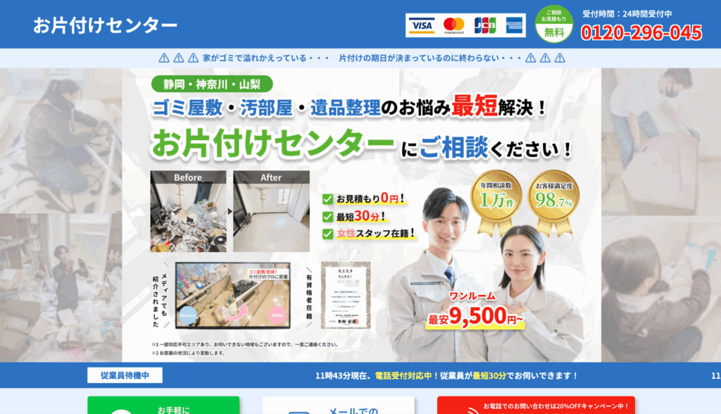 「お片付けセンター」は、駿東郡長泉町でも利用可能な24時間対応の片付けサービスです。
