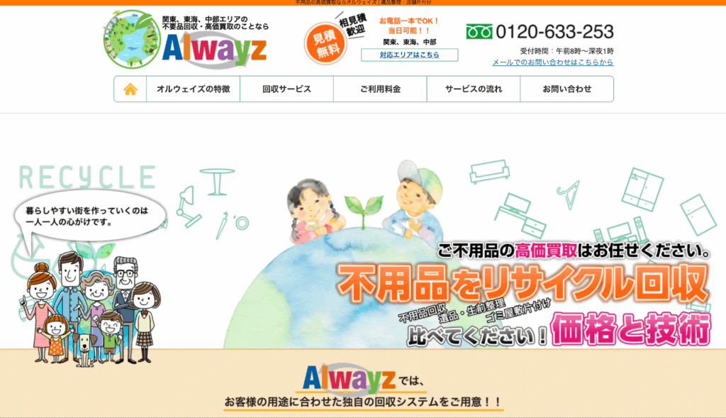 「Alwayz(オールウェイズ)」は、遺品整理や不用品回収、ゴミ屋敷の片付けなどを幅広く手掛けるプロの片付け業者です。