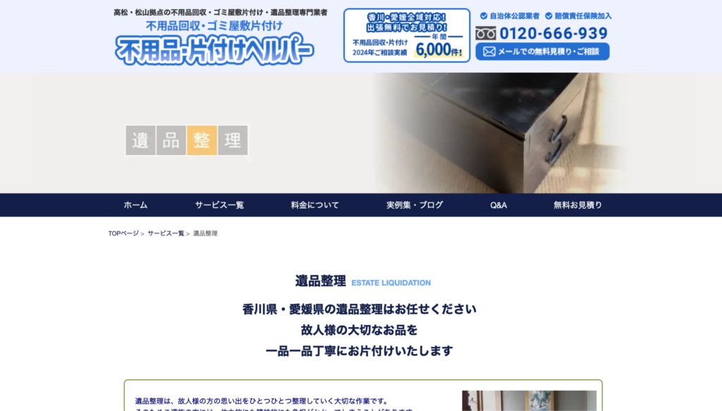 不用品・片付けヘルパーは、香川県内で遺品整理や不用品回収を行う業者です。