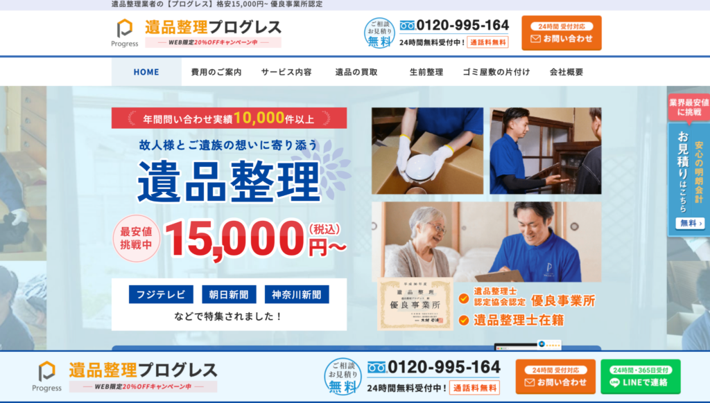 遺品整理プログレスは、全国規模で遺品整理を展開する専門業者です。