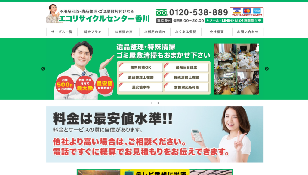 エコリサイクルセンター香川は、不用品回収や遺品整理に対応する業者です。