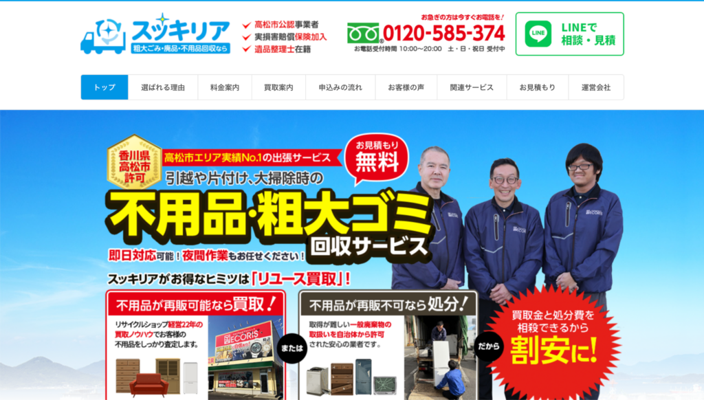 スッキリアは、高松市に特化して片付けや不用品回収を行う業者です。