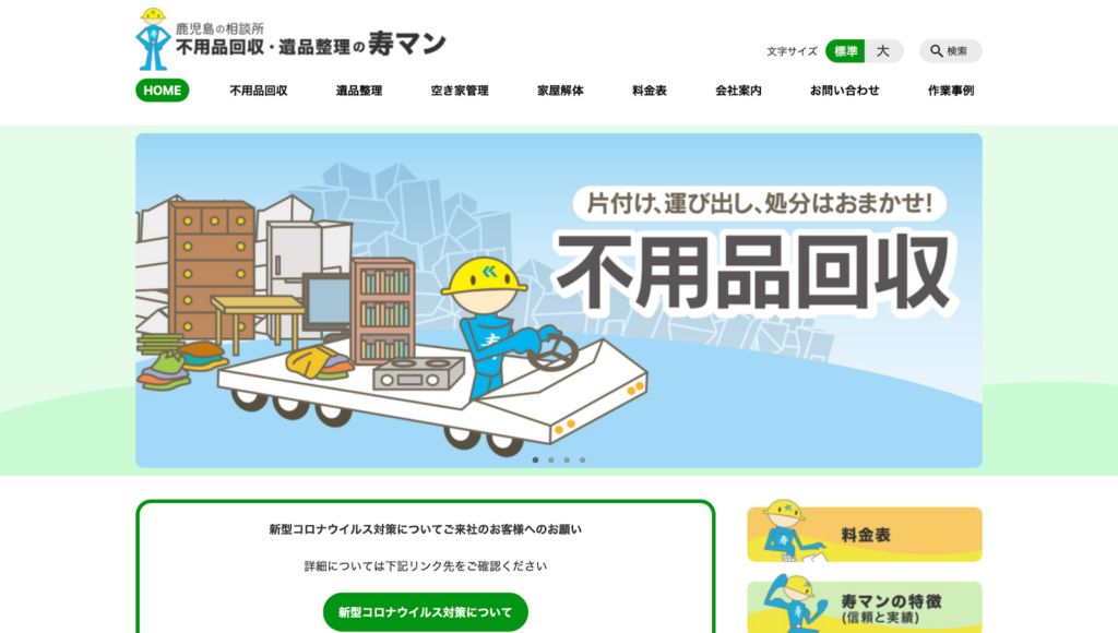 寿マンは、遺品整理や生前整理、不用品回収を中心に、現場ごとの事情に配慮した対応を行う業者です。
