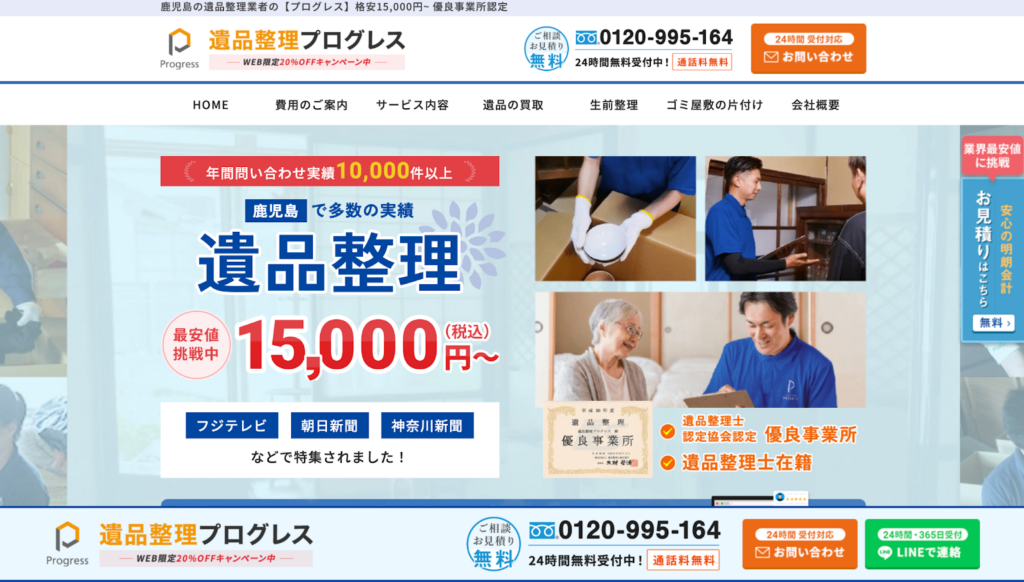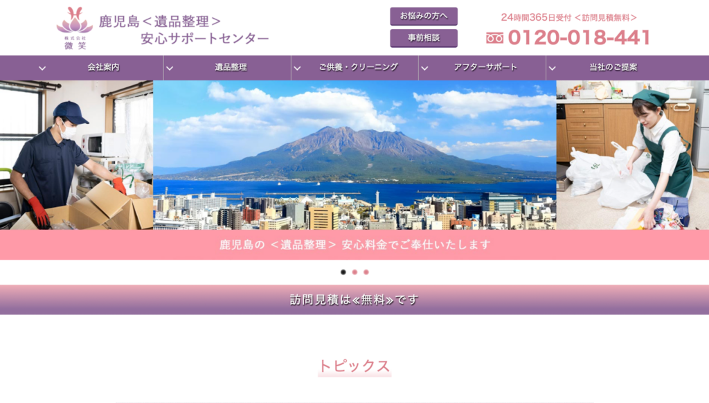 鹿児島市周辺を対象に、住居規模に応じた整理を相談しやすい体制が整っています。