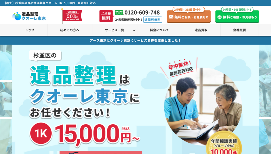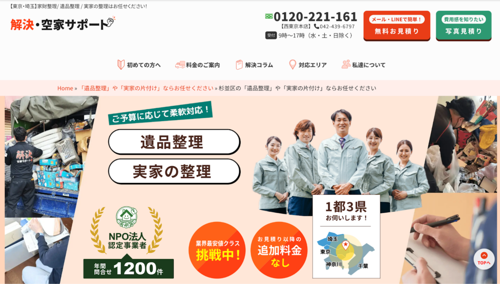 杉並区を含む東京都内全域に対応しており、戸建てや集合住宅など住環境に応じた整理を相談しやすい点が特徴です。