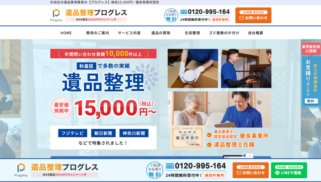 遺品整理プログレスは、遺品整理を専門に全国展開しており、東京都内では杉並区を含む広いエリアに対応しています。